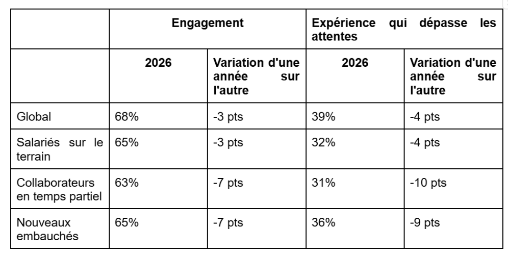 Les salariés en contact direct avec les clients et ceux travaillant à temps partiel signalent une dégradation de leur expérience collaborateur.